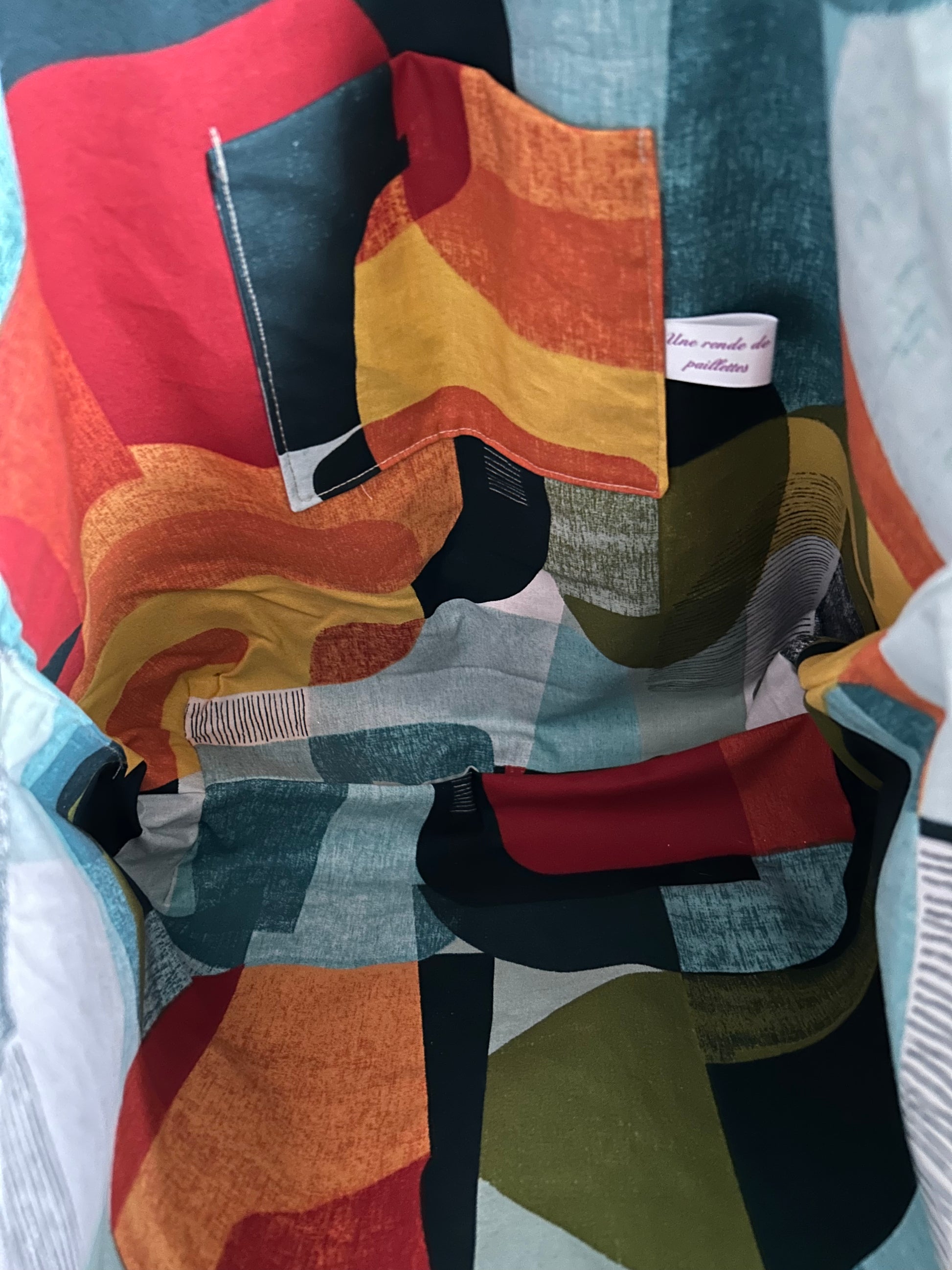 Bandeau en milieu de sac identique à la doublure intérieure.