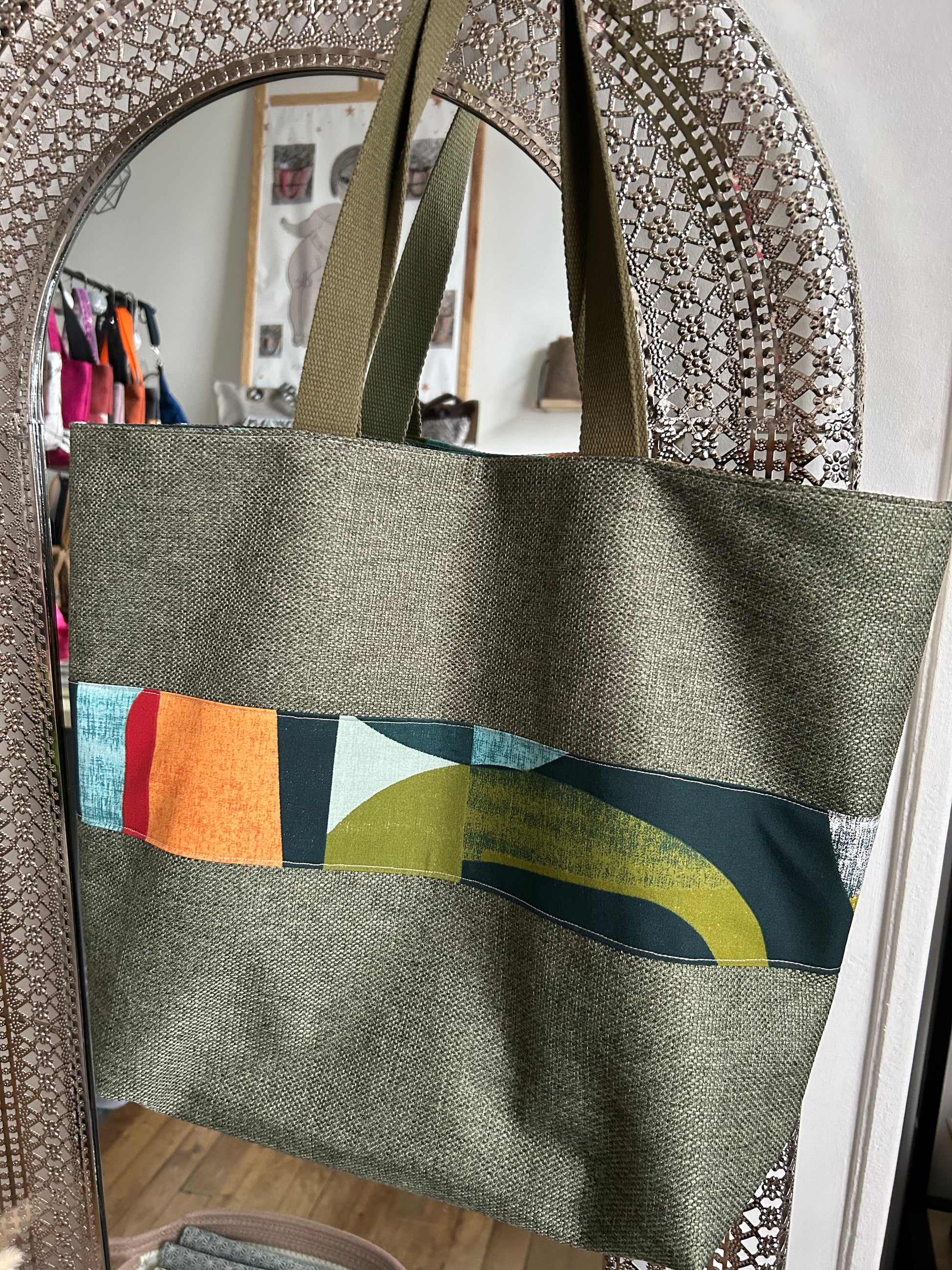 Sac grand format 47x36 cm en toile de coton vert kaki.